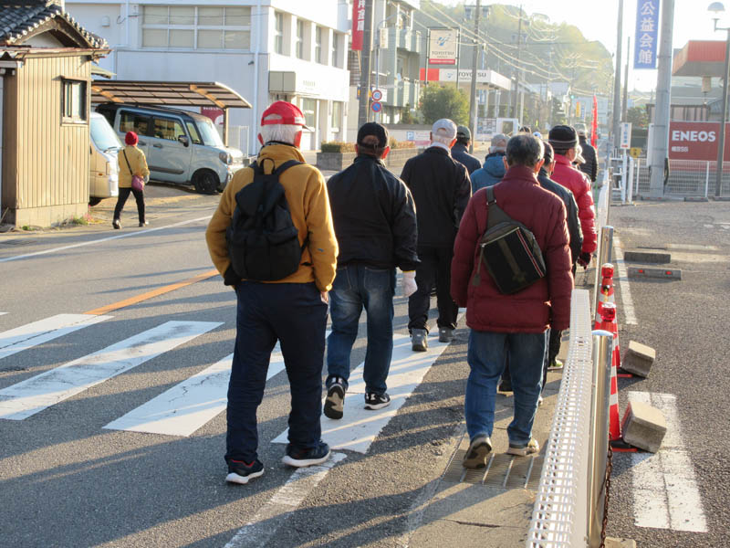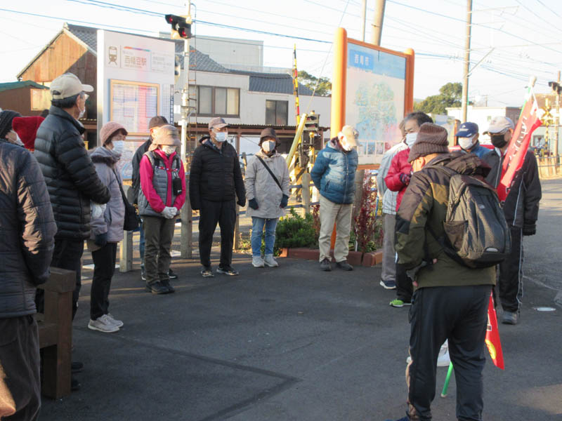 もう見慣れてしまいました。駅舎のない駅前広場です。会長の挨拶があり出発です