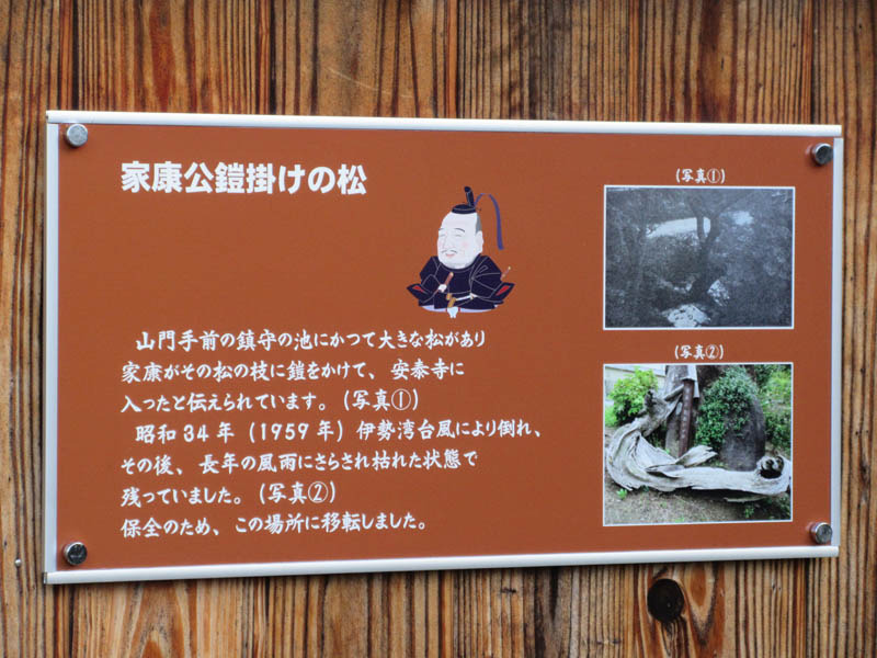 家康のと関係で有名な「家康公鎧掛けの松」で有名ですが、その看板もあります
