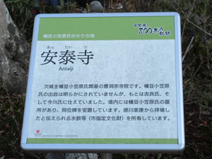 山門をくぐると「はずの民話」シリーズの看板で安泰寺の説明です。今まで英文が併記してある看板は初めてです。これからはこのような看板がいいですね