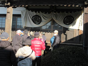 安泰寺の桑原住職から説明を受けます「家康公鎧掛けの松、家康公から拝領した水飲や大河ドラマ」等々の話ありました。寒い中また忙しいところ本当にありがとうございました