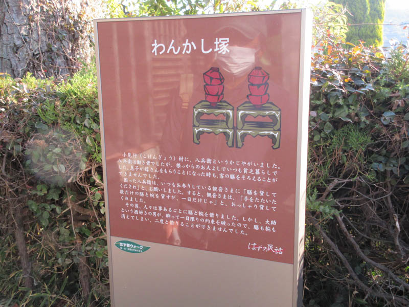 塚越観音には「わんかし塚」の民話がありまして、昔こんなことがあったようです。案内板の写真を読んでみてください。参拝を終えて東幡豆駅に向かい解散となりました。今回は初めてのコースで大変有意義であり、素晴らしい汗をかいた半日でした