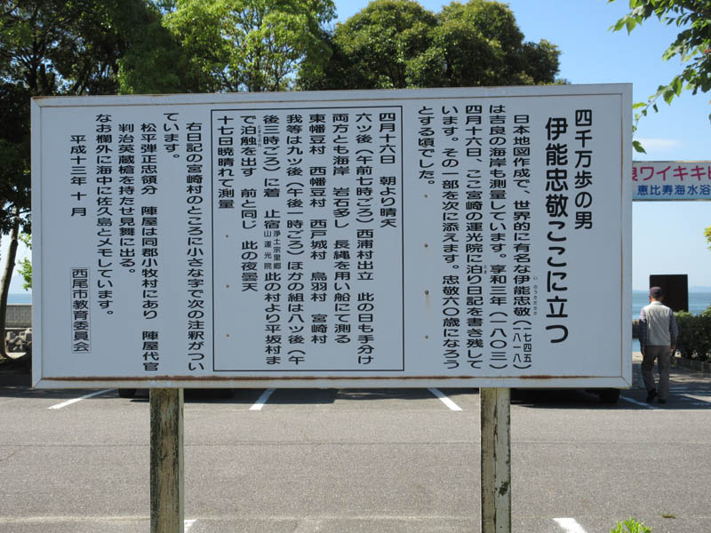 新しい発見です。伊能忠敬の案内碑です。江戸時代の測量でここに来ていたとは知らなんだ