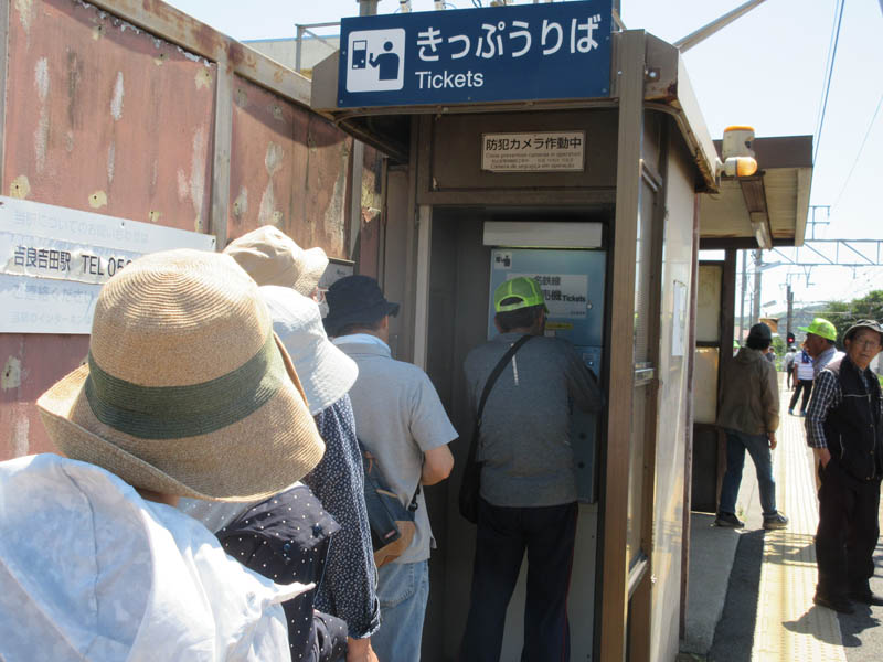 鳥羽駅に到着で帰りは、券売機で切符を買います。1台しかなく並ぶのが大変ですが、降車時に支払うより、いいですね |