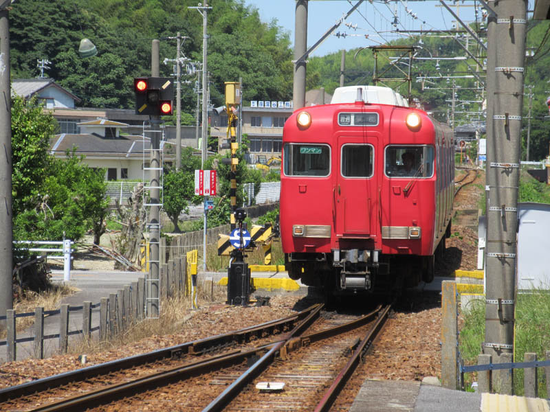 乗車する蒲郡行き電車の到着です。電車のクーラーで汗が引きます。いい汗をかいて楽しかったちょこっとウォーキングでした |