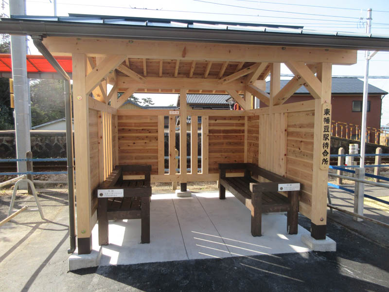 東幡豆駅待合所が完成間近です。駅舎がなくなり、雨の日大変でしたが、もうすぐ完成です。思ったより小さく、北風が大変です。あっ、贅沢かな・・・・?