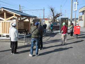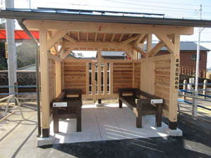 完成間近な待合所を前に雑談をして、電車を待ちます