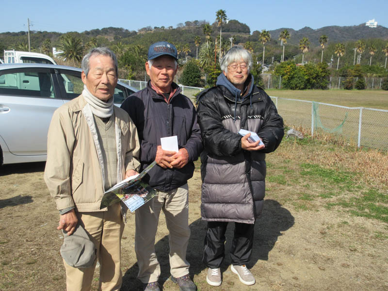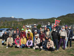休憩の後、集合写真をまた撮りました。全員の予定でしたが、もう出発してしまった人がいました。参加賞をもらい、歓談も終わり、東幡豆駅に向かい再スタートしました。駅で解散です。いい汗をかいた半日でした。新年度も皆さんの参加を!