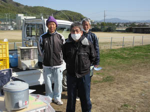休憩は緑ヶ崎グランドです。暖かいお茶の後、1年間の参加回数に応じて会から参加賞が出ました。5月の雨天中止がありましたが、年間すべて参加した2名には皆勤賞が出ました。副会長(右側)さんから受け取りました。新年度も参加しよう!