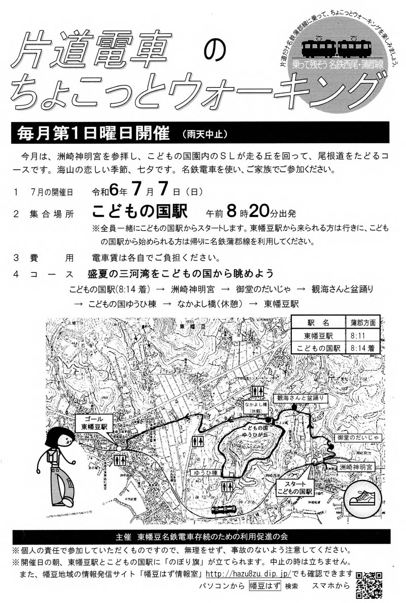 「梅雨明けは、まだなのに暑い日が続いています。」昨年、このように書きましたが、今年はそれ以上に猛暑が続いていて、その中ですが、蒲郡線を利用してのウォーキングを楽しみました。30人近くが、たっぷりといい汗をかきウォーキングを楽しみました。