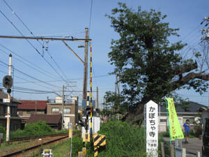 駅前を出発し線路沿いに歩き、神明宮にに向かいます。暑いです!