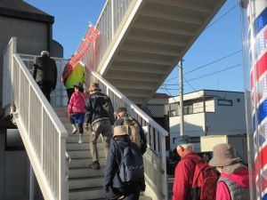 ![]() 駅を出発してすぐ、歩道橋に上がり市道を横断します |