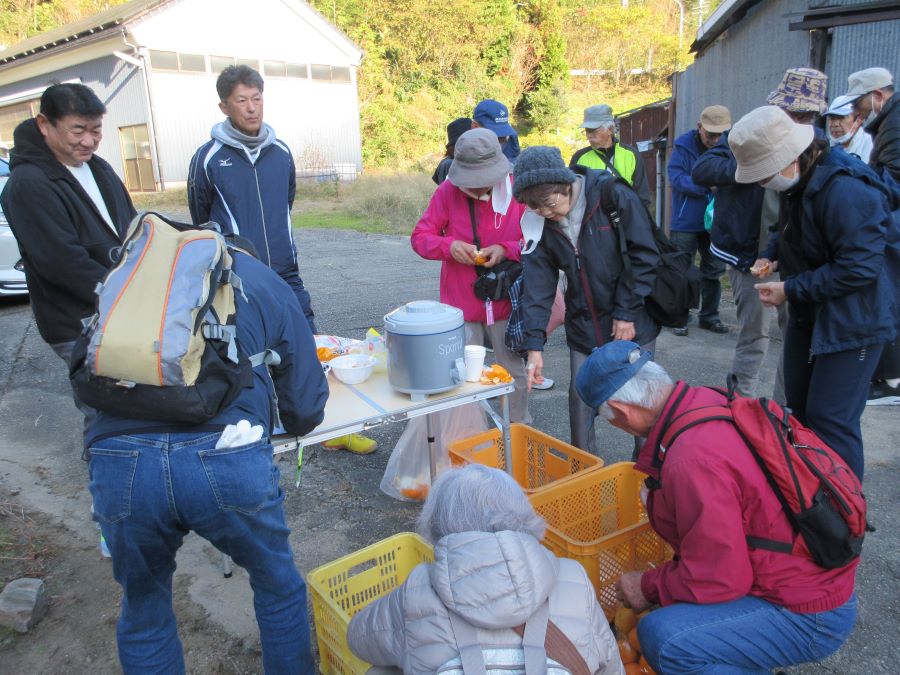 ![]() もみじ寺(長寿庵寺)に到着。休憩です。お茶を飲みながら、ミカンも食べまして、土産用ももらいました。ミカンは役員さんが用意してくれました。ありがとう、ごちそうさま! |