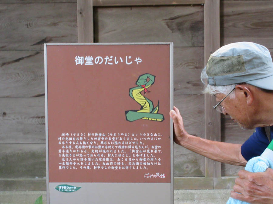 御堂山新宮寺を参拝します。ここには「御堂のだいじゃ」という「はずの民話」説明看板もあります