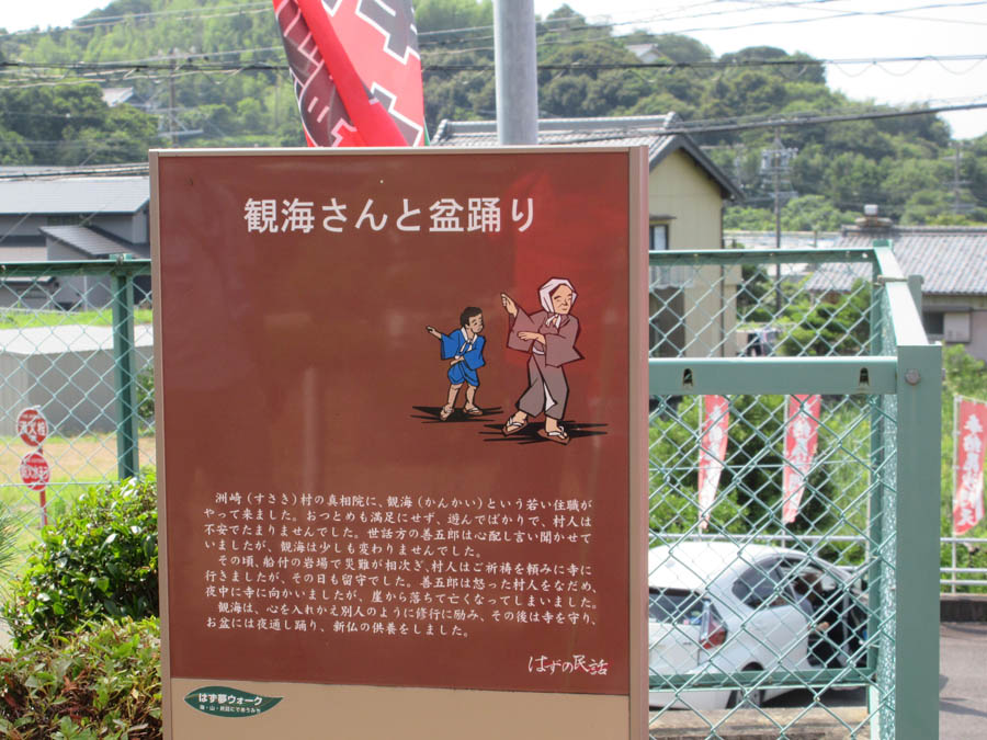 真相院には「観海さんと盆踊り」の民話があり、「はずの民話」シリーズの案内看板があります