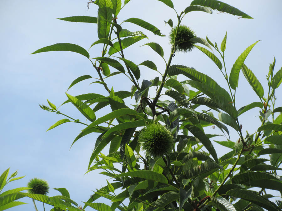 途中の林では実が大きくなった栗の木が暑い青空に向かって伸びています。秋が楽しみです