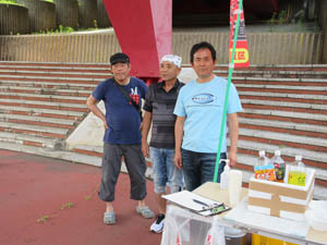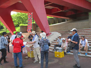 なかよし橋下は日陰で休憩です。冷えたドリンクが美味しい!