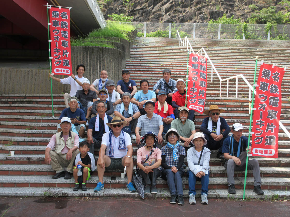 梅雨明けが7月4日にあり、猛暑が続いています。「暑さ対策をして参加を!」とテロップで流しました。そんな中ですが、蒲郡線を利用してのウォーキングを楽しみました。25人が、たっぷりといい汗をかいて東幡豆駅に向かい歩きました。