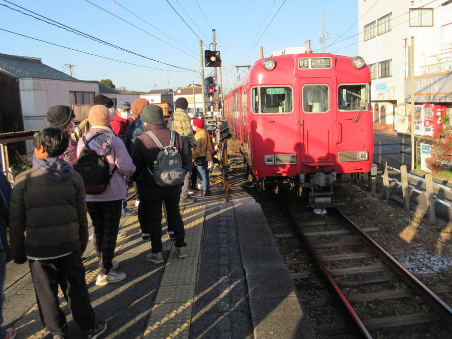 | R7.12.7(日)の様子です。暖冬とはいえ12月です。朝は冷えました。役員さんのおかげで「みかんの土産付き」です。今年は多く30人が参加し今年は幡豆中学校で行われている「鉄研」のイベントに見学が推奨のコースで、筆者も山越えでなく鉄研コースにしました。みんな快晴のもとミカンを味わい、いい汗をかいての半日でした。 なお、5年前のビデオですが、「東幡豆名鉄電車存続のための利用促進の会」の応援メッセージは、まだ次のYouTubeに公開されています。全部を見てもらいたいですが、私たちの部分は「応援メッセージ1」の中にあり、1分間位だけど是非ご覧ください。名鉄西尾・蒲郡線利用促進を応援しましょう!! https://www.youtube.com/watch?v=6Pi0hyQLyCY&feature=youtu.be |