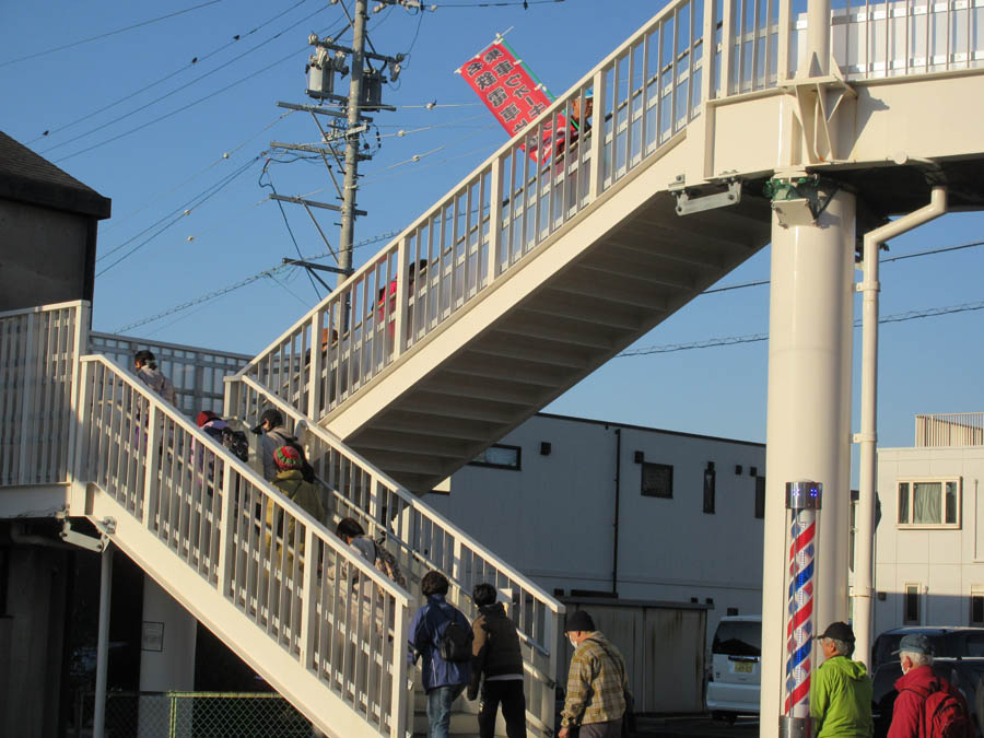 ![]() 駅を出発してすぐ、歩道橋に上がり市道を横断します(昨年と同じパターンになってしまいました) |