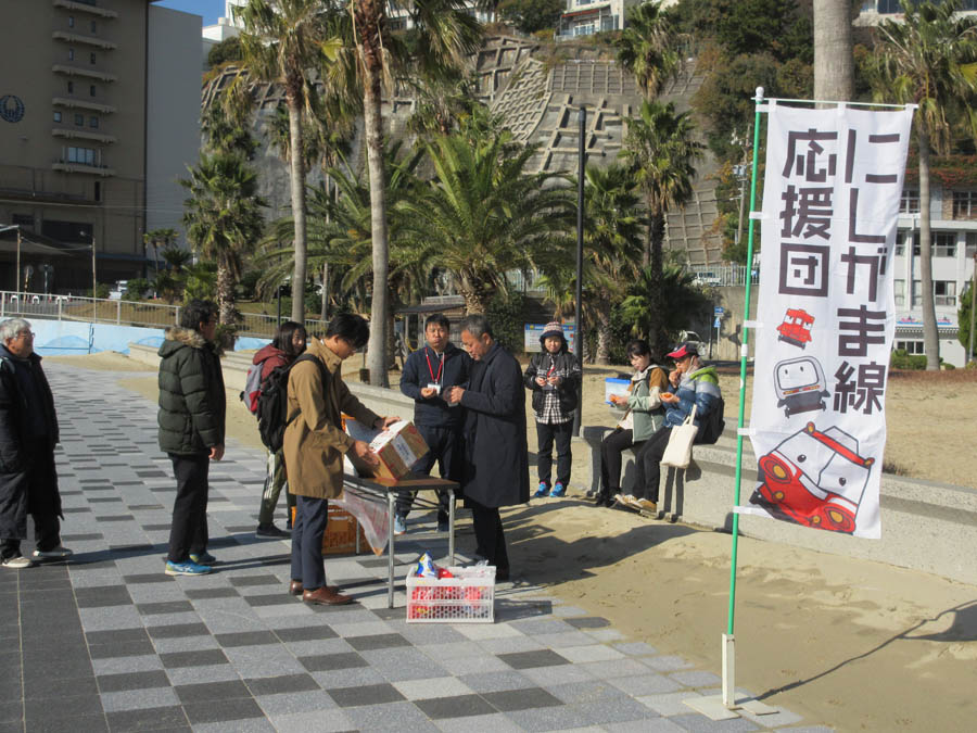 「にしがま線」存続を願いミカン配布も終えて撤収になります。