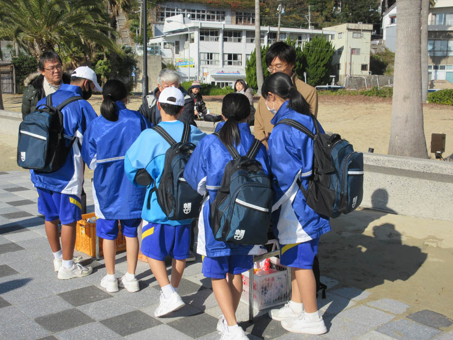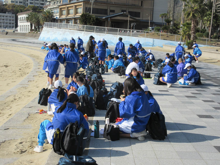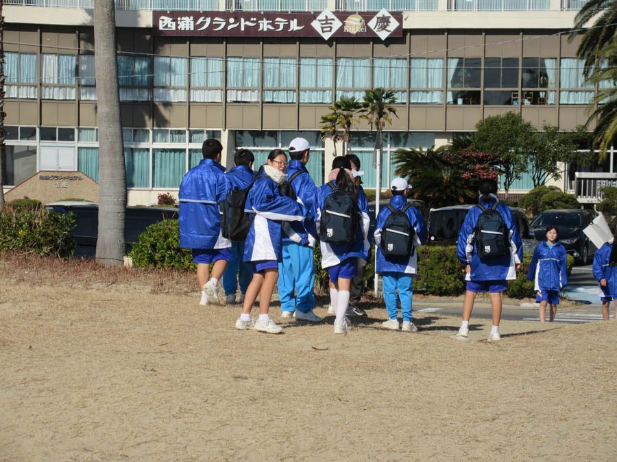 R5.12.19(火)の様子です。幡豆中学校では名鉄にしがま線存続運動の一環として、毎年この時期にシーサイドウォークを開催しています。今年も12月19日(火)蒲郡競艇場前を出発し、幡豆中学校を目指しました。