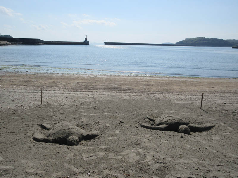 14時現在の様子です。2人が造ったウミガメです