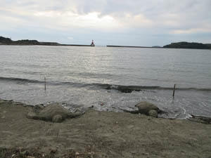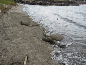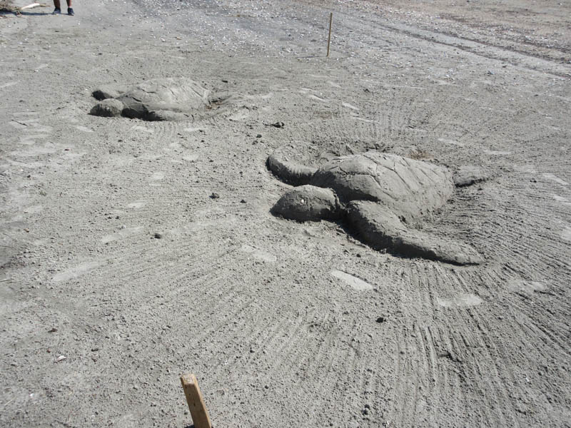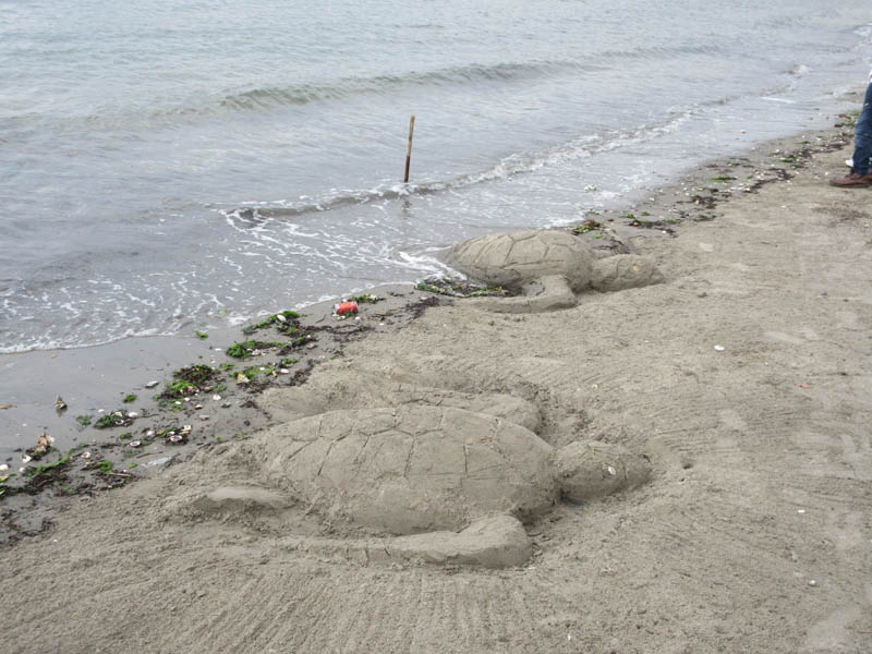 今にも泳ぎ出しそうなウミガメ。少し崩れてきてしまいました。(残念、さようなら!)