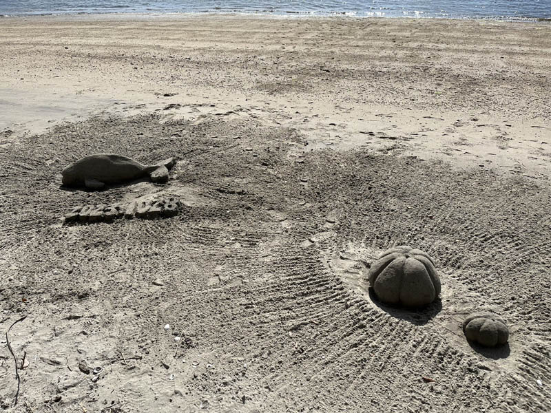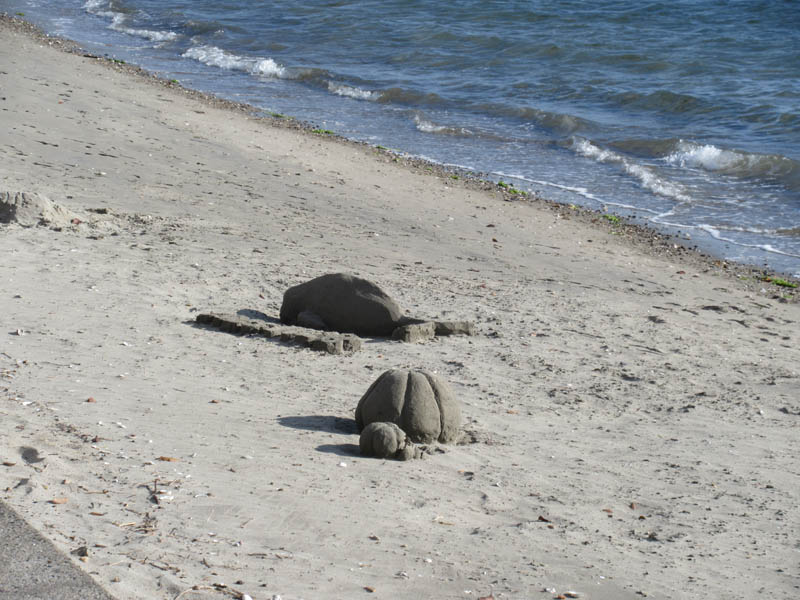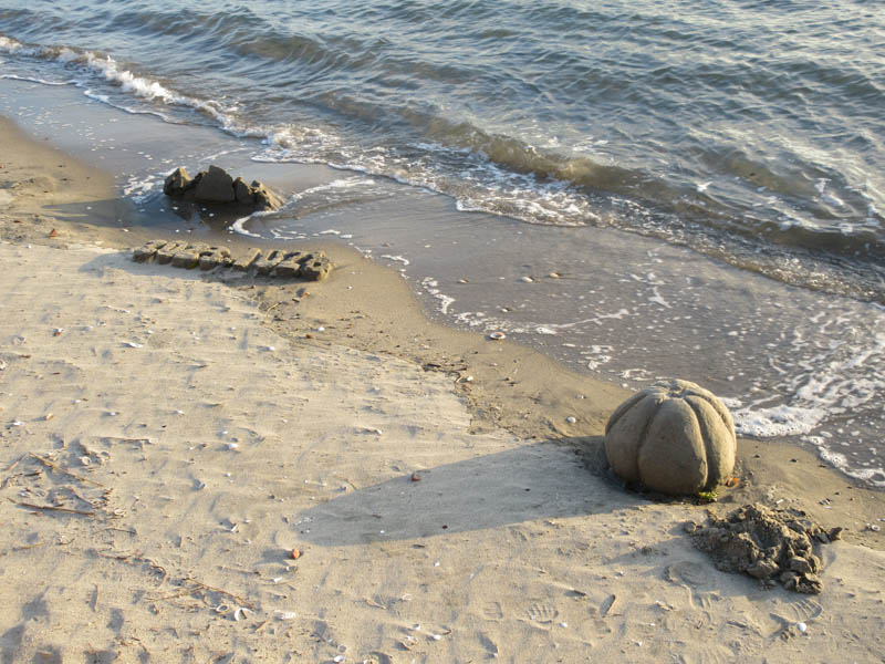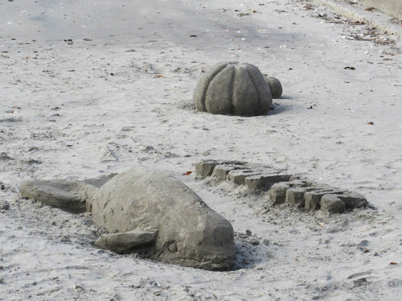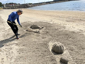 10月28日第2回目のサンドアート(砂像)造りを妙善寺前の海岸で前回同様MYさんと私(OH)とで行いました。今回はMYさんがスナメリを私がカボチャの作成に汗を流しました。次回は未定ですが、どなたでも参加見学自由ですので海岸で見かけたら声をかけてください。(製作者本人談)